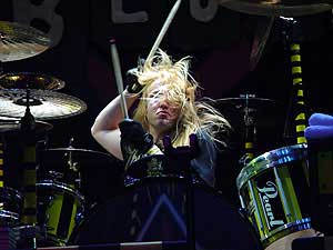 Sweet at the Extreme Martigras 2002, here performing with Sudux (formerly Titanic). photos by Jeff Gross.