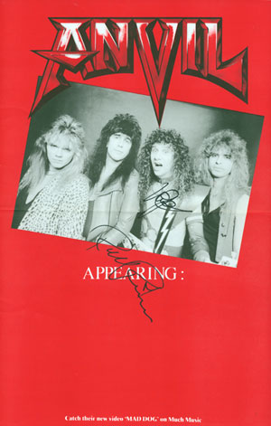 About a year after the original release of "This Is Thirteen" the movie "Anvil, The Story of Anvil" went into theaters. It features a real life Spinal Tap in Anvil and gained the band some new fans and noteriety. Well, all I have to say is, its about time! Anvil are long overdue! With the movie, VH-1 Classic picked up "This Is Thirteen" for re-release on CD and vinyl with an additional bonus track. I picked up the vinyl version since I already own the original CD pressing direct from the band. The LP includes three bonus tracks including the new song "Thumb Hang" and two re-recorded classics. Having been a die-hard Anvil fan since hearing “Metal on Metal” in 1983, I was excited to find out that there would be an Anvil documentary made. Who would have thought that the movie would be a hit and help re-launch the band’s career. “Anvil-The Story of Anvil” is more than a documentary. It’s a movie. Anvil comes off as hapless and loveable, but also come off looking like a real life Spinal Tap. There are just too many parallels to Spinal Tap to list, but there is the separation and reunion of the two best friends, getting lost on the way to a gig, playing before 174 people in a 10,000 capacity venue, inept management, and of course the over the top, ridiculous song lyrics. They don’t visit Elvis’ tomb, but the do visit Stonehenge. It’s all there and it’s all Anvil. On top of that, the movie is quite funny at times and heart-wrenching at others. My wife, who is not a metal fan, even enjoyed the movie. Steve "Lips" Kudlow and drummer Robb Reiner aren’t just characters, these are real guys who have waived their metal flag since their inception. In a nutshell, this is a movie about two guys who refuse to give up on a dream and we, the audience, get to take a very personal look inside these two guys. This movie is bound to make Anvil some new fans and rekindle the interest of some older fans. Also picked up the biography of Anvil. I had thought that it might just be the movie set to print, however, the book goes into much more detail about the band, the individual members, the recordings, touring, their victories and stuggles and their thoughts on what has transpired over the years with the band. It was a terrific read and I tore through the book in no time at all. The book includes several color pages with vintage photos of the band as well. My video is autographed by Steve "Lips" Kudlow & drummer Robb .