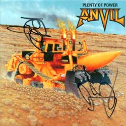 Well, as I have said before, Anvil are nothing if not consistent. I can't imagine any fan of the band not liking this disc as it's pure Anvil speed metal. The Canadian metal legend are one of the very few bands, who were part of the early days of the metal scene and have never let their musical direction waver nor have they let their fans down. One noticeable improvement, at least in my opinion, is the lack of any silly porno songs. HORRAYYYY! I applaud this for sure. Lyrical content covers topics like Pro Wrestling, Disgruntled Postal Workers, Armageddon, being chased by the police and even someone who is addicted to the computer ("Computer Drone"). One other minor change is that the overall sound of "Plenty of Power" is less thrash oriented than the last few albums, recalling more of the "Metal on Metal/Forged in Fire" days. There is still plenty of speed, especially in songs like "Real Metal," which is a song that would make Manowar proud! The last song is a bonus track that is apparently only on the Canadian version. The European version has a bonus track called "Dirty Dorothy". My copy is autographed by Lips, Robb Reiner, and Glenn Five.