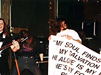 Eventually, we figured out that Christianity was not about having your life lived for you. We left the church we were in and got involved in a well balanced church. I discovered that a relationship with Jesus was what was important, not a list of man-made do's and dont's. In 1993 I joined a Christian heavy metal band myself, becoming the vocalist for Ultimatum.